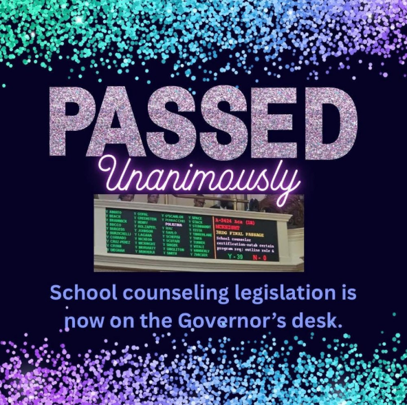 Our bill, with updated number A-1516 passed the first round in the Assembly Education Committee on September 22, 2023! A1516 had been amended to remove provisions of the bill requiring eighty (80) percent of school counselor time to provide counseling services, to clarify counseling services for an individualized education program (IEP), to revise professional development requirements, and to revise the requirements for a school counseling program.